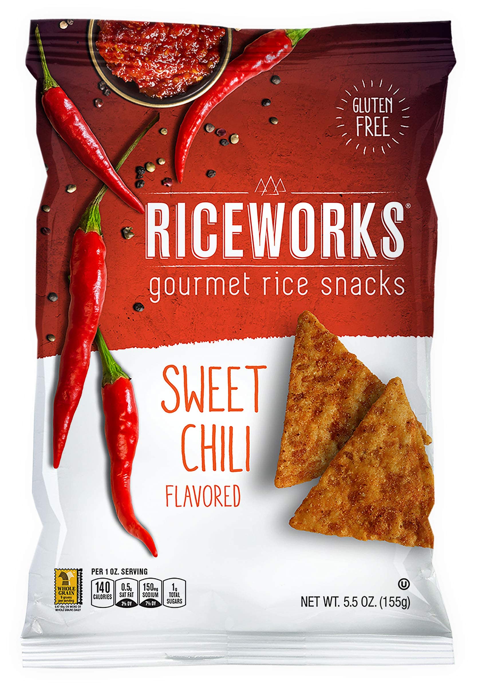 Riceworks Sweet Chili Rice Chips & Snacks, Non GMO, Gluten Free, 5.5 oz. per bag (Sweet Chili, 6 Pack)