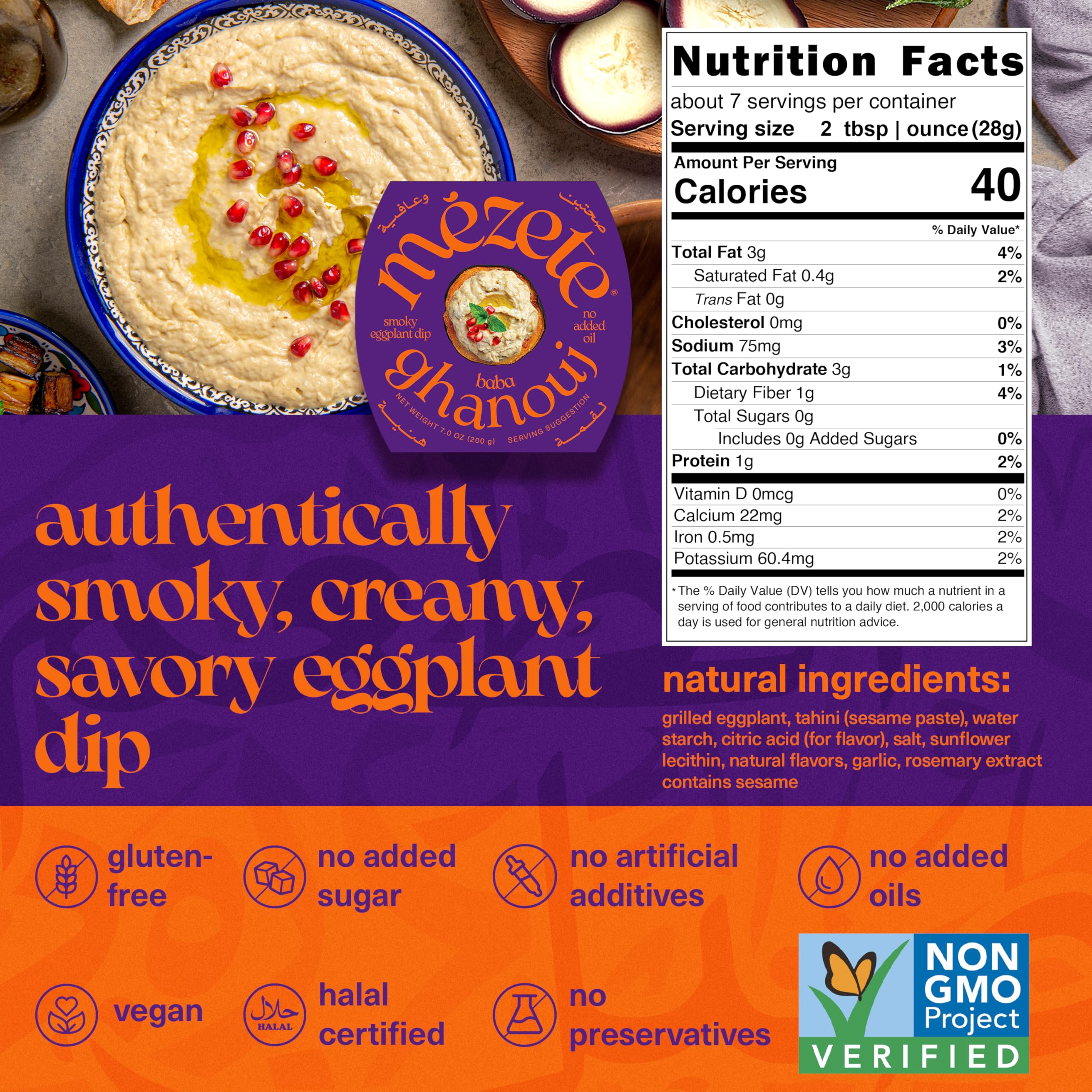 Mezete Cholesterol-Free Dip | All-Natural Baba Ganoush | Shelf-Stable | Ready to Serve | Smoky Flavor | No Added Oils | Roasted Eggplant | Non-GMO | Gluten Free | 180g