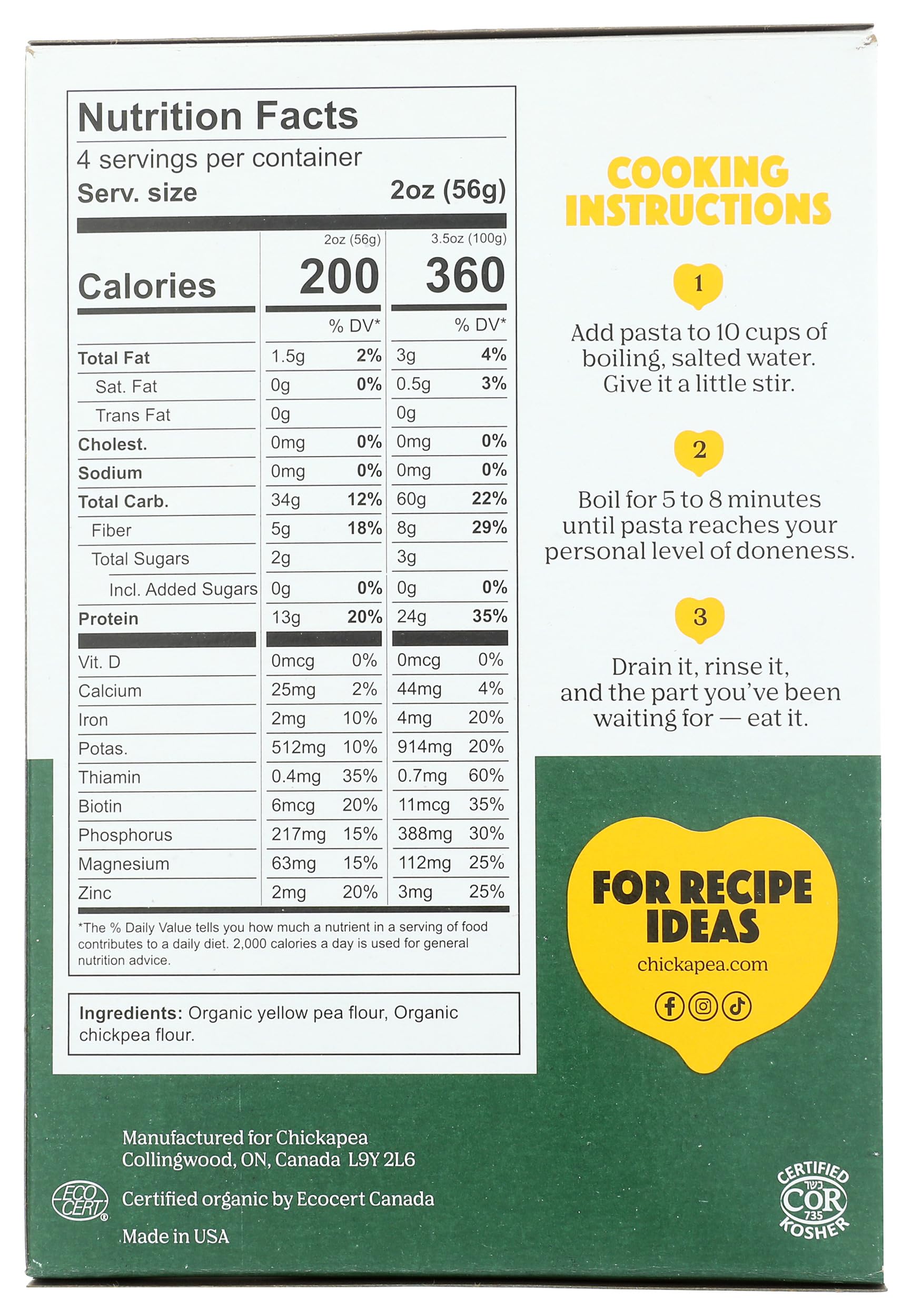 Chickapea Organic Chickpea And Lentils Shells - Vegan Pasta With 23 Grams of Protein and 11 Grams of Fiber - Non GMO