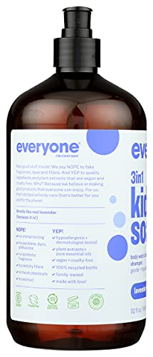 Everyone 3-in-1 Kids Soap, Body Wash, Bubble Bath, Shampoo, 32 Ounce (Pack of 1), Lavender Lullaby, Coconut Cleanser with Plant Extracts and Pure Essential Oils