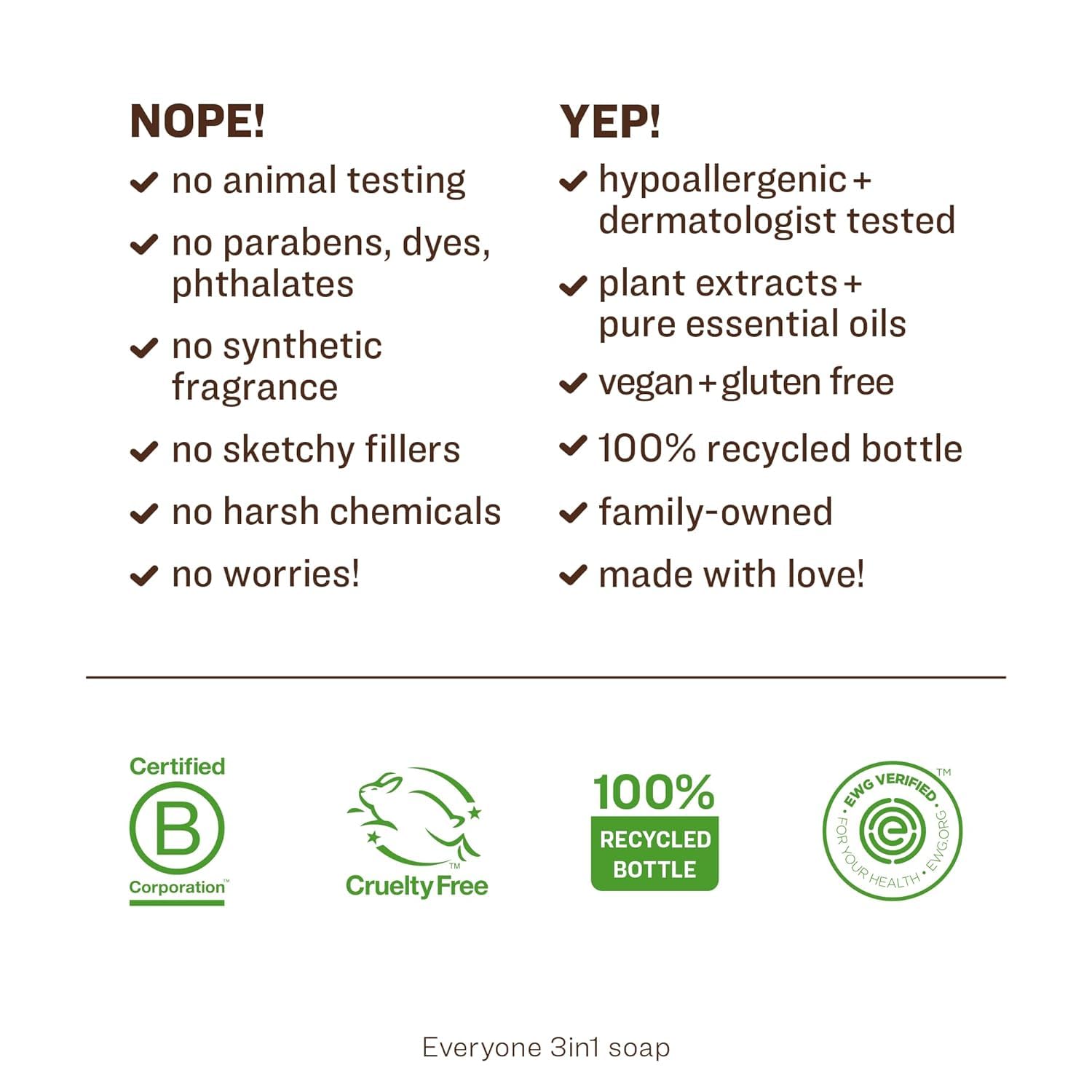 This versatile soap is formulated to be used as shampoo, body wash and bubble bath. The happy scent of Lavender essential oil will make bath time a refreshing, easy experience. From head to tippy toes, this wonderful soap will leave your kid clean and happy. Generously sized for every kid. 32 oz, packaged in a recycled bottle.