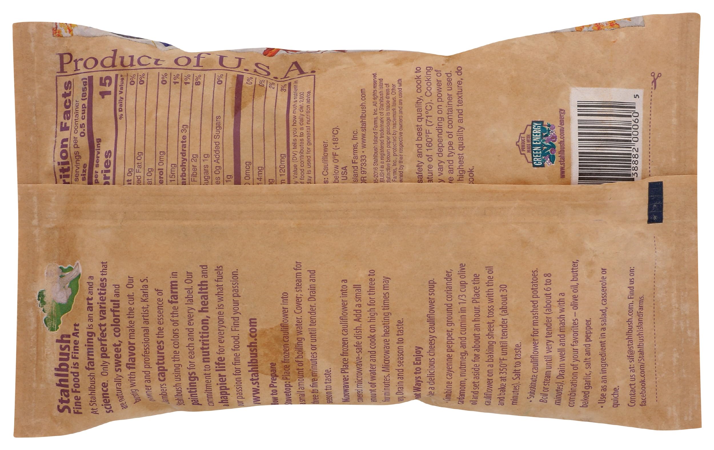 Stahlbush Island Farms Cauliflower .The Freezing/chilling Temperatures is frozen: 0 degrees .Made of good quality ingredient .