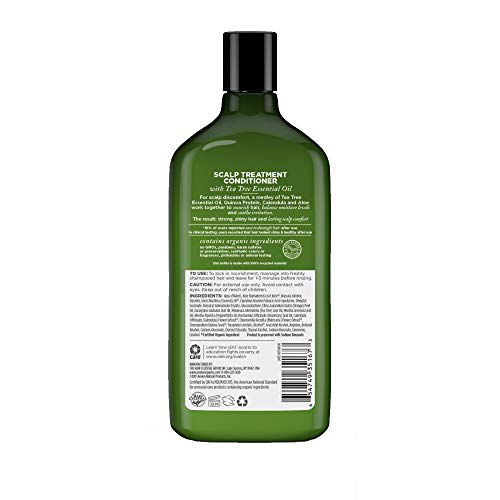 Deeply nourish hair and relieve scalp discomfort with Avalon Organics Scalp Treatment Tea Tree Conditioner. Made with plant-sourced botanicals and essential oils, this certified organic formula balances moisture levels and soothes irritation. Tea tree essential oil, quinoa protein, calendula and aloe work together to gently condition and seal the hair cuticle for strong, shiny hair and lasting scalp comfort. This EWG VERIFIED conditioner is made with non-GMO ingredients and no parabens, harsh preservatives, synthetic colors or fragrances, phthalates or sulfates. It is also vegan and not tested on animals. Includes one 11 oz. bottle of Avalon Organics Scalp Treatment Tea Tree Conditioner. Curated from nature’s pure resources, Avalon Organics NSF organic certified skin care, hair care and bath & body products are deep-rooted in a profound respect for the earth. Combining modern science with the botanical world, we constantly strive to perfect each formula, evolve expertise and deliver innovation. Searching out the beautifying benefits hidden within each plant, Avalon Organics thoughtfully develops formulas to not only nourish the body, but also nourish the mind and the soul.
