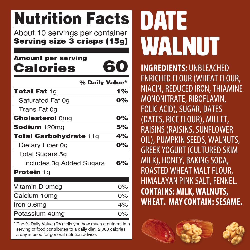 Kii Naturals Artisan Crisps, Healthy Snack Crackers for Cheese, Meats, Spreads, Charcuterie Board - Non-GMO, Kosher, No Preservatives, Hand-Crafted - Date & Walnut, 5.3 Ounce (Pack of 1)