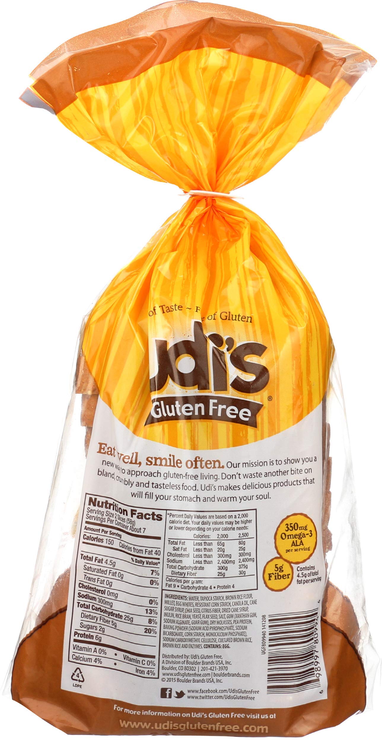 Udi's Gluten-Free Millet-Chia Bread, 14.3 OZ [8 pe...