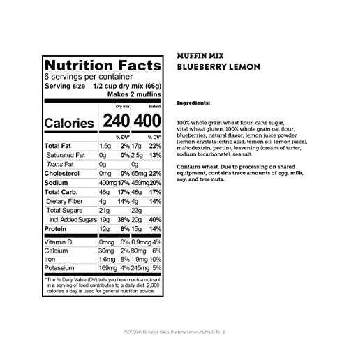 Kodiak Cakes Muffin Baking Mix, Blueberry Lemon, High Protein, 100% Whole Grains, (Pack of 1)