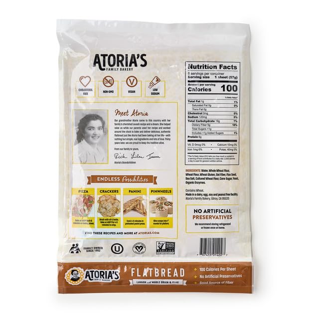 Atoria's Family Bakery, Whole Grain Lavash 5 Count, 10 Ounce