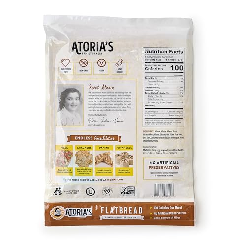 California Lavash whole grain flatbread is a soft thin bread that is low-fat, low-sodium and vegan-friendly. Use this flatbread to make paninis, crisp it in the oven to create crackers, or load it with toppings to make a pizza. You can layer it with meat, cheese and veggies to make an individual wrap, or slice it into pinwheels to make a platter of appetizers. The 10 ounce package contains five thin sheets of flatbread.