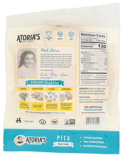 Atoria's Family Bakery, Pita Traditional 6 Count, 12 Ounce