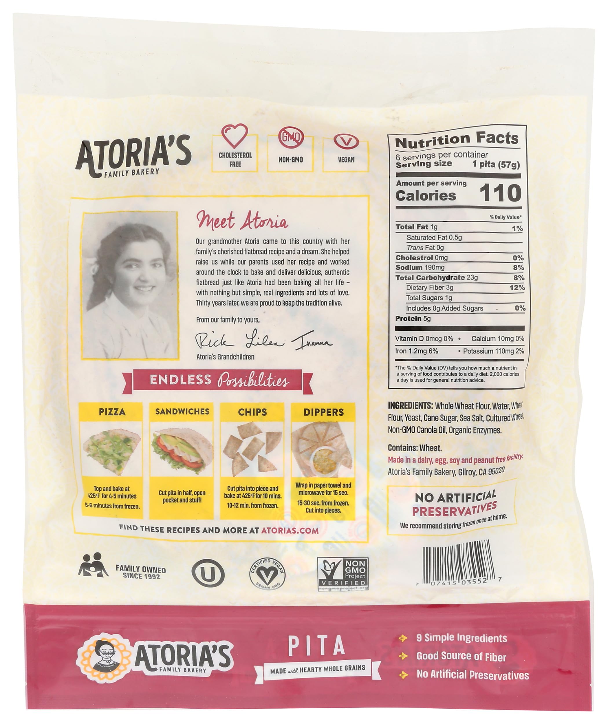 Atoria's Family Bakery, Pita Whole Grain 6 Count, 12 Ounce