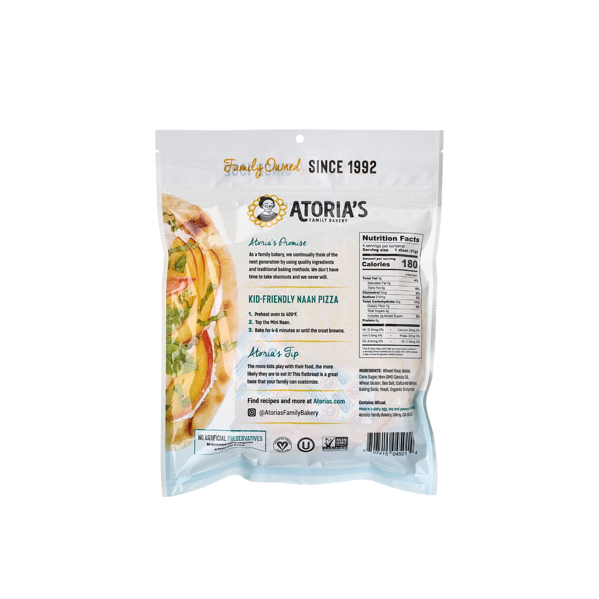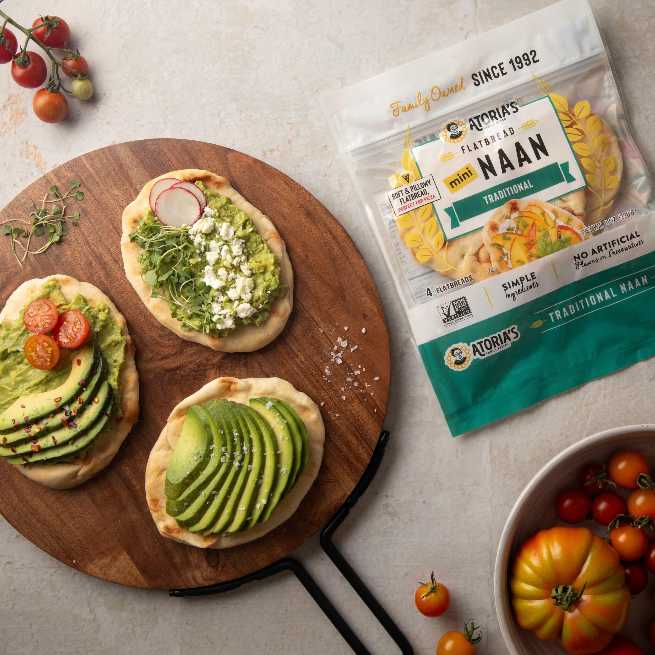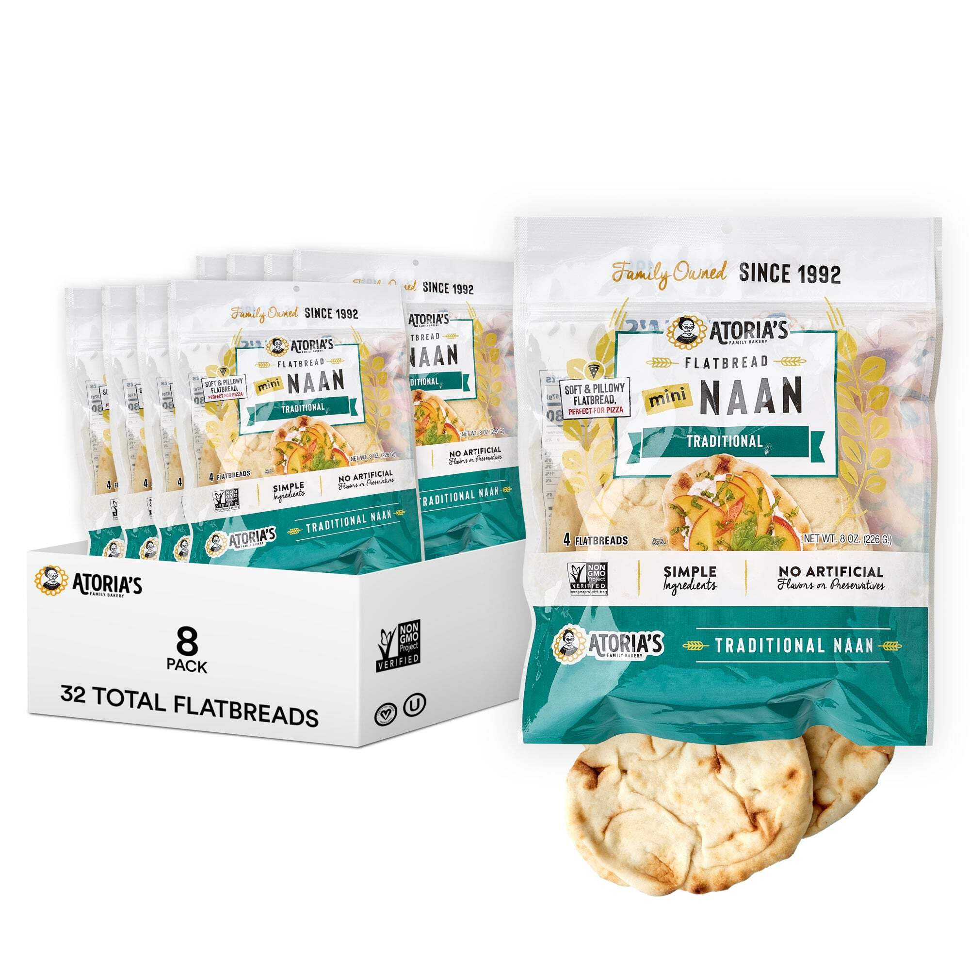 Atoria's Family Bakery Mini Traditional Naan Flatbread 8 Pack | 32 Individual Mini Naans | Fresh Baked, All Natural, GMO Free and No Artificial Preservatives or Flavors 8-Packs of 4 Sheets (32 Sheets)