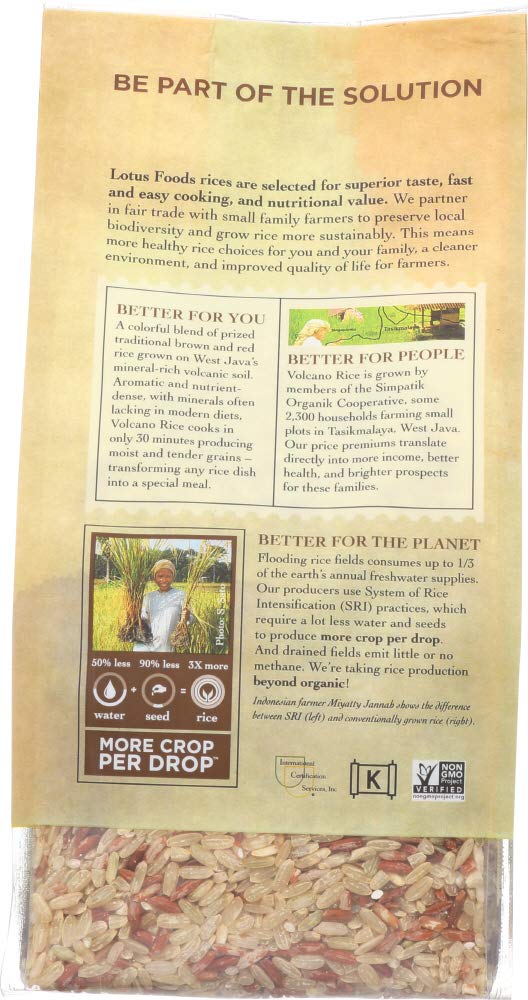 Volcano Rice is a mineral- and antioxidant-packed blend of traditional aromatic West Java rices grown on volcanic soils rich in magnesium, manganese and zinc - essential minerals so often lacking in modern diets. A colorful blend of nutrient-dense Sintanur brown rice, whole grain red rice and lightly milled red rice that is reputed to restore vitality due to its high mineral, fiber and antioxidant content, it's no wonder the Javanese favor these healthy rices for their satisfying wholesome flavor. We're told that Sintanur, with a hint of vanilla-like Pandan aroma, is such a favorite with Javanese that they take it along when visiting other islands. Restaurants, industrial kitchens that cook in bulk, chefs, and other foodservice professionals love using Volcano Rice because it can transform any rice dish into a more flavorful and nutritious meal.