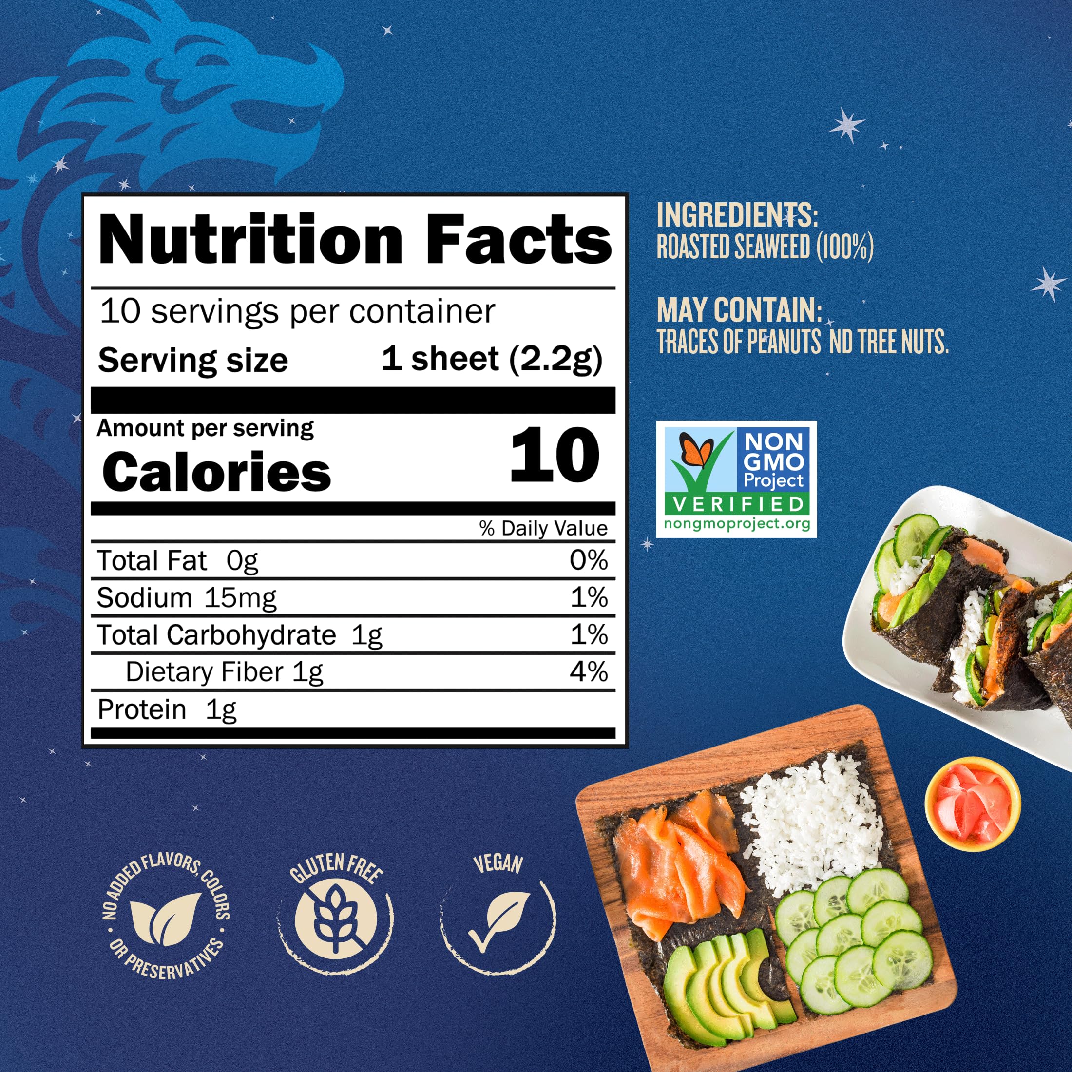 Blue Dragon Sushi Nori - 0.77oz (Pack of 1) - No Artificial Flavors Or Preservatives - Made With 100% Roasted Seaweed Sheets - Vegan, Gluten Free Seaweed Wraps - Ideal For Sushi Rolls & Hand Rolls
