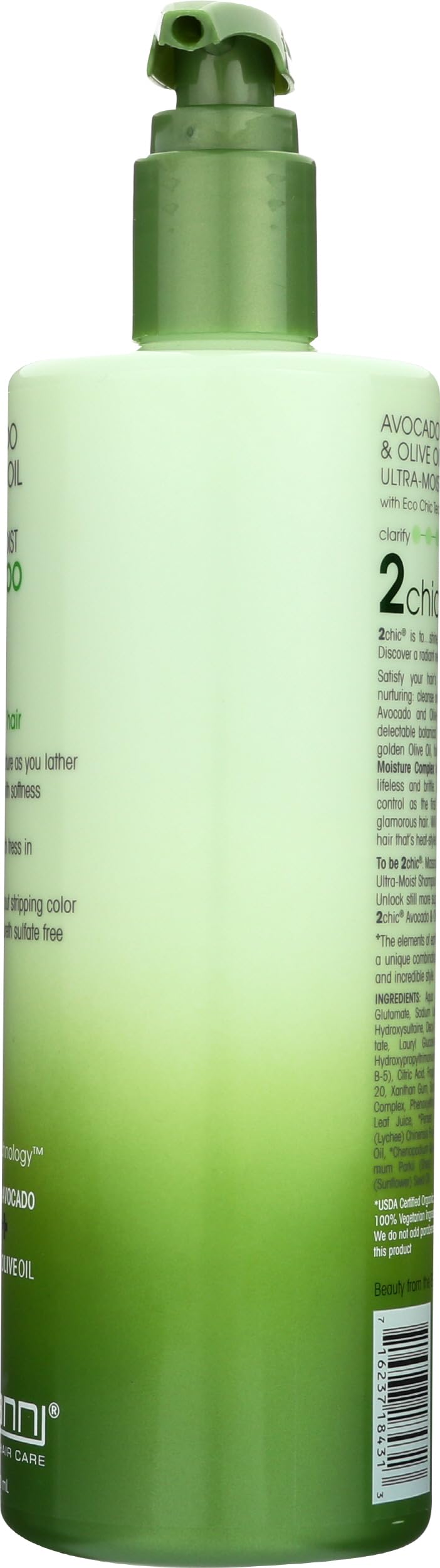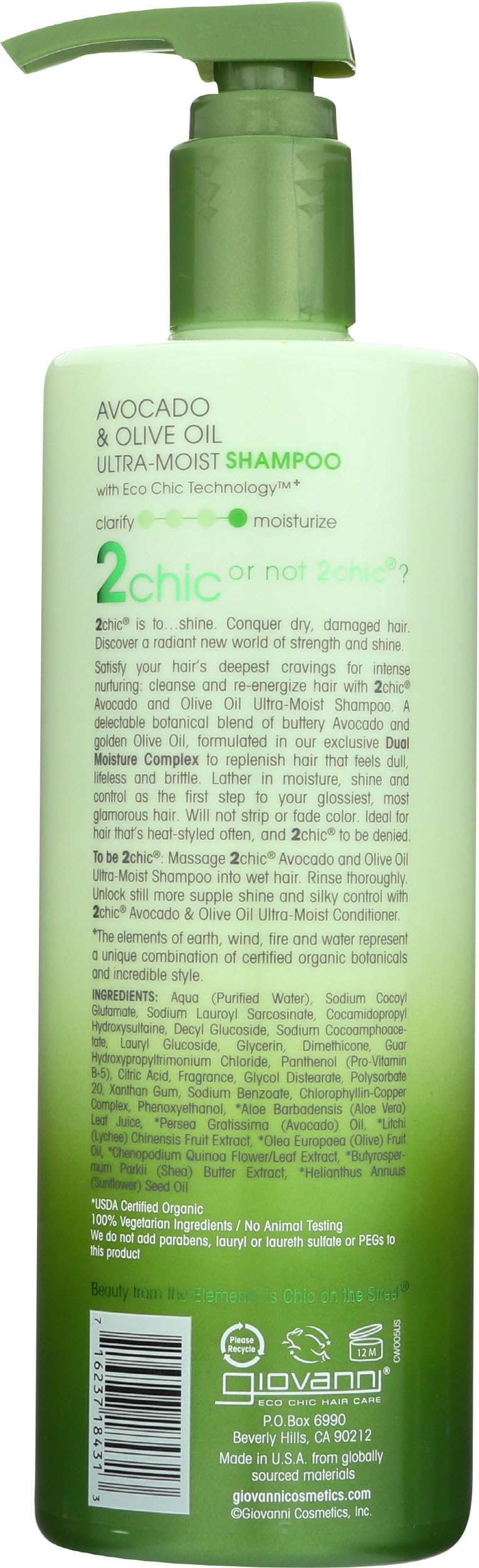 GIOVANNI 2chic Ultra-Moist Shampoo - Avocado & Olive Oil, Creamy Hydration Formula, Enriched with Aloe Vera, Shea Butter, Botanical Extracts, No Parabens, Color Safe - 24 oz