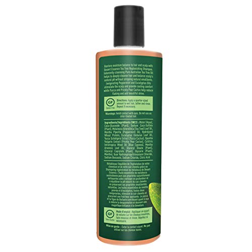 Desert Essence Tea Tree Oil Replenishing Shampoo, 12.7 fl oz, Gluten Free, Vegetarian, Non-GMO, Paraben Free - Moisture Replenishing Shampoo with Peppermint & Eucalyptus Oils to Deeply Cleanse Hair