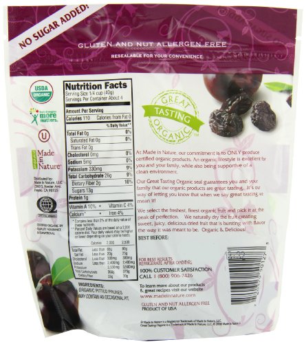 Made In Nature Organic Plums, Pitted, Dried and Unsulfured, 6-Ounce Bags (Pack of 6)