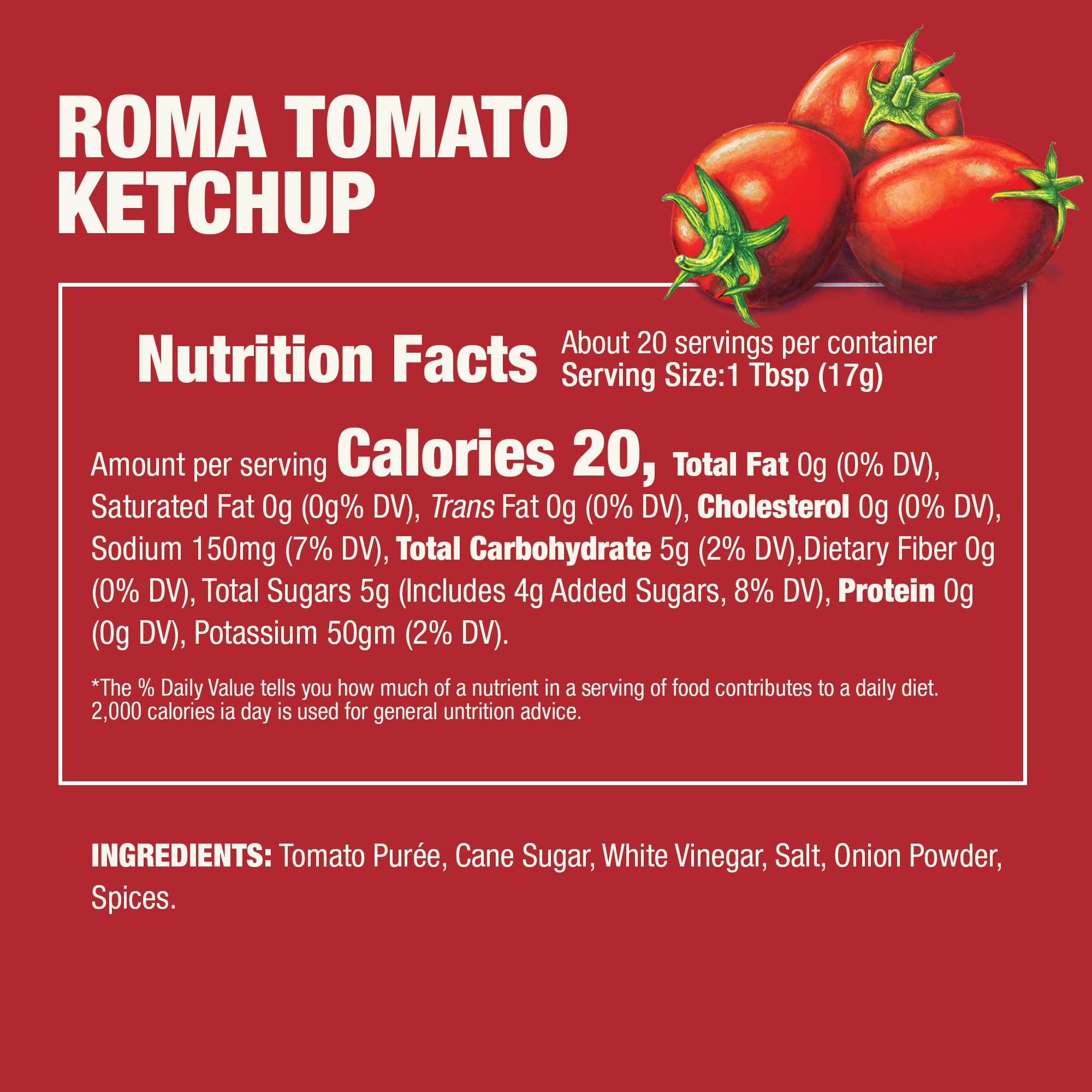 We start with naturally sweet, puréed Roma tomatoes before adding a special blend of spices and seasonings for our unique take on a classic ketchup. Made with only simple, natural ingredients and no high fructose corn syrup, artificial preservatives, colors or artificial flavors